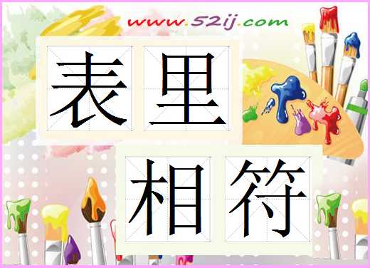 图片是表里相符的成语,你可以将此图片制作成语卡片,这样就有利于记住成语,如果你搜藏本文,你还可以随时结合卡片复习表里相符的意思,温故而知新嘛。(注:适合制作四字成语,大于四字的由于图片版面原因暂不提供,默认为成语大全)