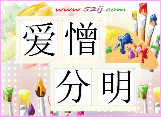 成语解释:爱憎分明的意思——憎:恨。爱和恨的界限十分清楚。