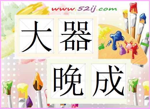 图片是大器晚成的成语,你可以将此图片制作成语卡片,这样就有利于记住成语,如果你搜藏本文,你还可以随时结合卡片复习大器晚成的意思,温故而知新嘛。(注:适合制作四字成语,大于四字的由于图片版面原因暂不提供,默认为成语大全)