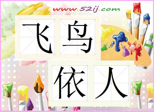 图片是飞鸟依人的成语,你可以将此图片制作成语卡片,这样就有利于记住成语,如果你搜藏本文,你还可以随时结合卡片复习飞鸟依人的意思,温故而知新嘛。(注:适合制作四字成语,大于四字的由于图片版面原因暂不提供,默认为成语大全)