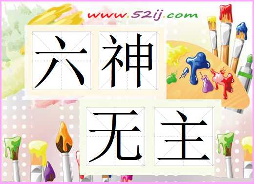 图片是六神无主的成语,你可以将此图片制作成语卡片,这样就有利于记住成语,如果你搜藏本文,你还可以随时结合卡片复习六神无主的意思,温故而知新嘛。(注:适合制作四字成语,大于四字的由于图片版面原因暂不提供,默认为成语大全)