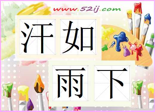 图片是汗如雨下的成语,可以将图片制作汗如雨下的卡片从而便于记忆。(52ij成语大全提供)