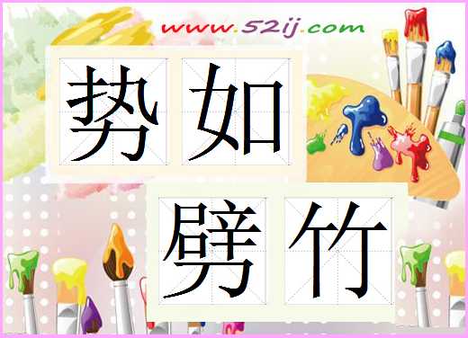 图片是势如劈竹的成语,可以将图片制作势如劈竹的卡片从而便于记忆。(52ij成语大全提供)