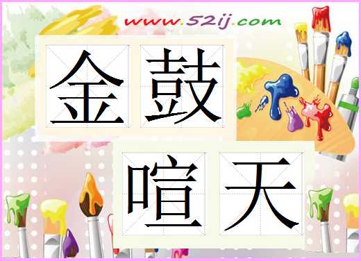 图片是金鼓喧天的成语,可以将图片制作金鼓喧天的卡片从而便于记忆。(52ij成语大全提供)