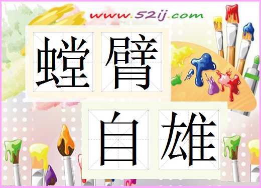 图片是螳臂自雄的成语,可以将图片制作螳臂自雄的卡片从而便于记忆。(52ij成语大全提供)