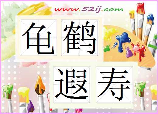 图片是龟鹤遐寿的成语,可以将图片制作龟鹤遐寿的卡片从而便于记忆。(52ij成语大全提供)