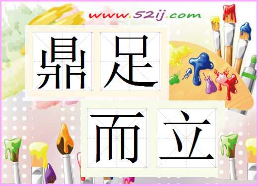 图片是鼎足而立的成语,可以将图片制作鼎足而立的卡片从而便于记忆。(52ij成语大全提供)