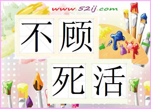 成语解释:不顾死活的意思——顾:顾惜,眷顾。不顾自己的生命,比喻拚命