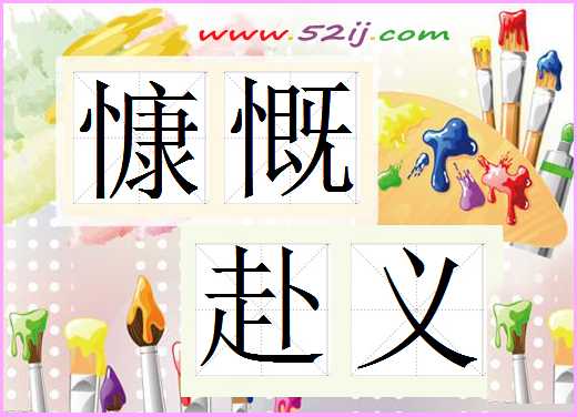 图片是慷慨赴义的成语,可以将图片制作慷慨赴义的卡片从而便于记忆。(52ij成语大全提供)