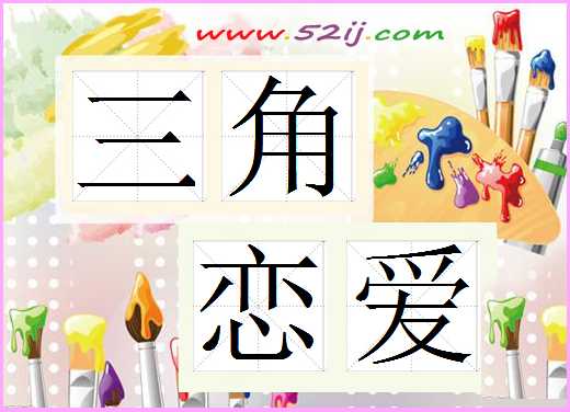 图片是三角恋爱的成语,可以将图片制作三角恋爱的卡片从而便于记忆。(52ij成语大全提供)