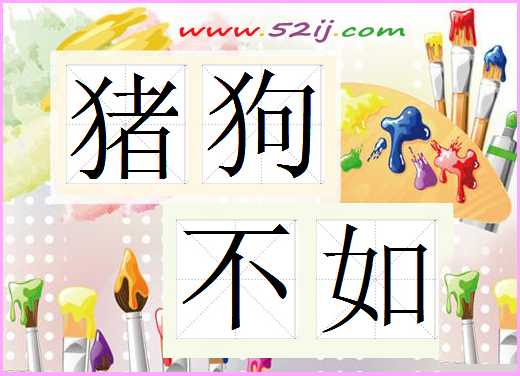 图片是猪狗不如的成语,可以将图片制作猪狗不如的卡片从而便于记忆。(52ij成语大全提供)