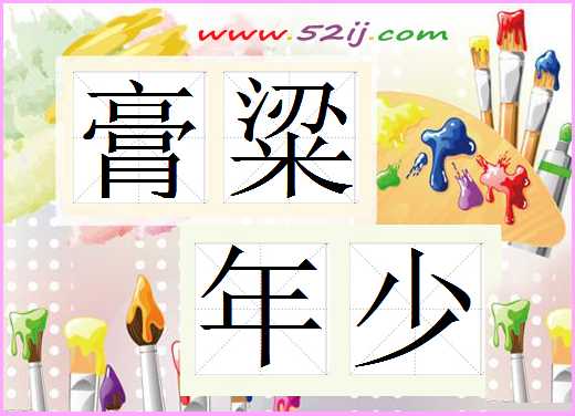 图片是膏粱年少的成语,可以将图片制作膏粱年少的卡片从而便于记忆。(52ij成语大全提供)