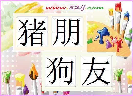 成语解释:猪朋狗友的意思——比喻好吃懒做、不务正业的坏朋友。