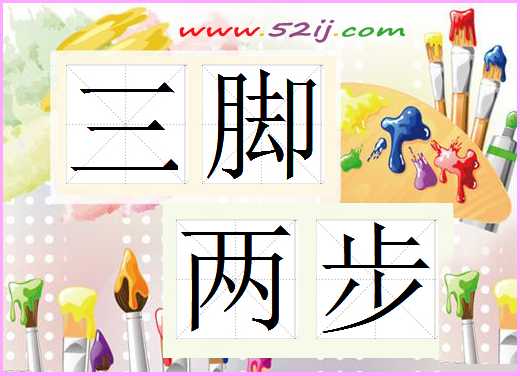 图片是三脚两步的成语,可以将图片制作三脚两步的卡片从而便于记忆。(52ij成语大全提供)