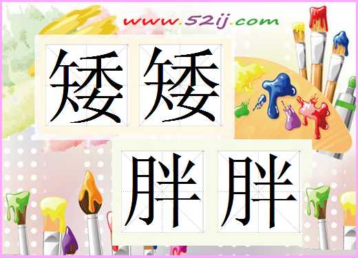 图片是矮矮胖胖的成语,可以将图片制作矮矮胖胖的卡片从而便于记忆。(52ij成语大全提供)