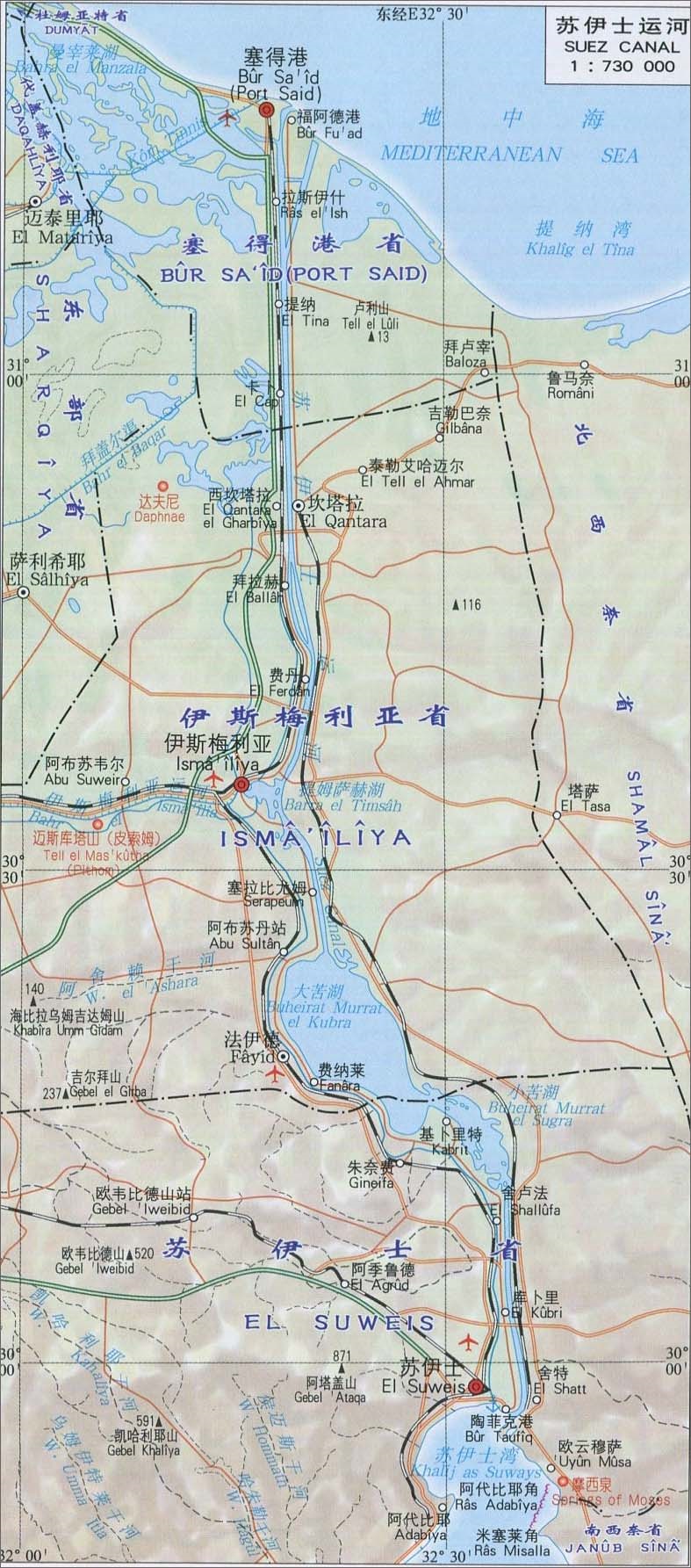 苏伊士运河地图(鼠标点击以上地图图片即可查看高清大地图)