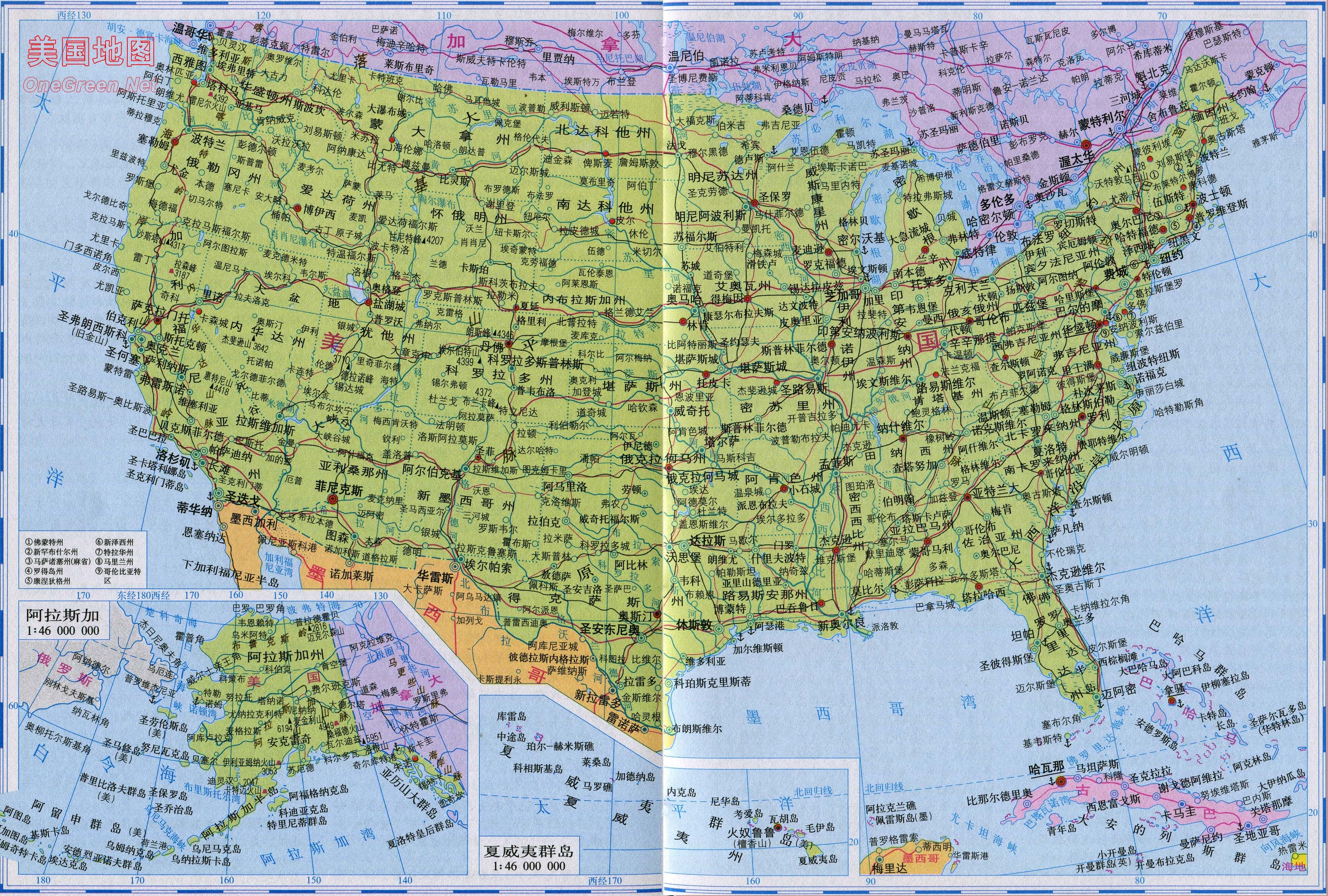 美国地图 高清(鼠标点击以上地图图片即可查看高清大地图)