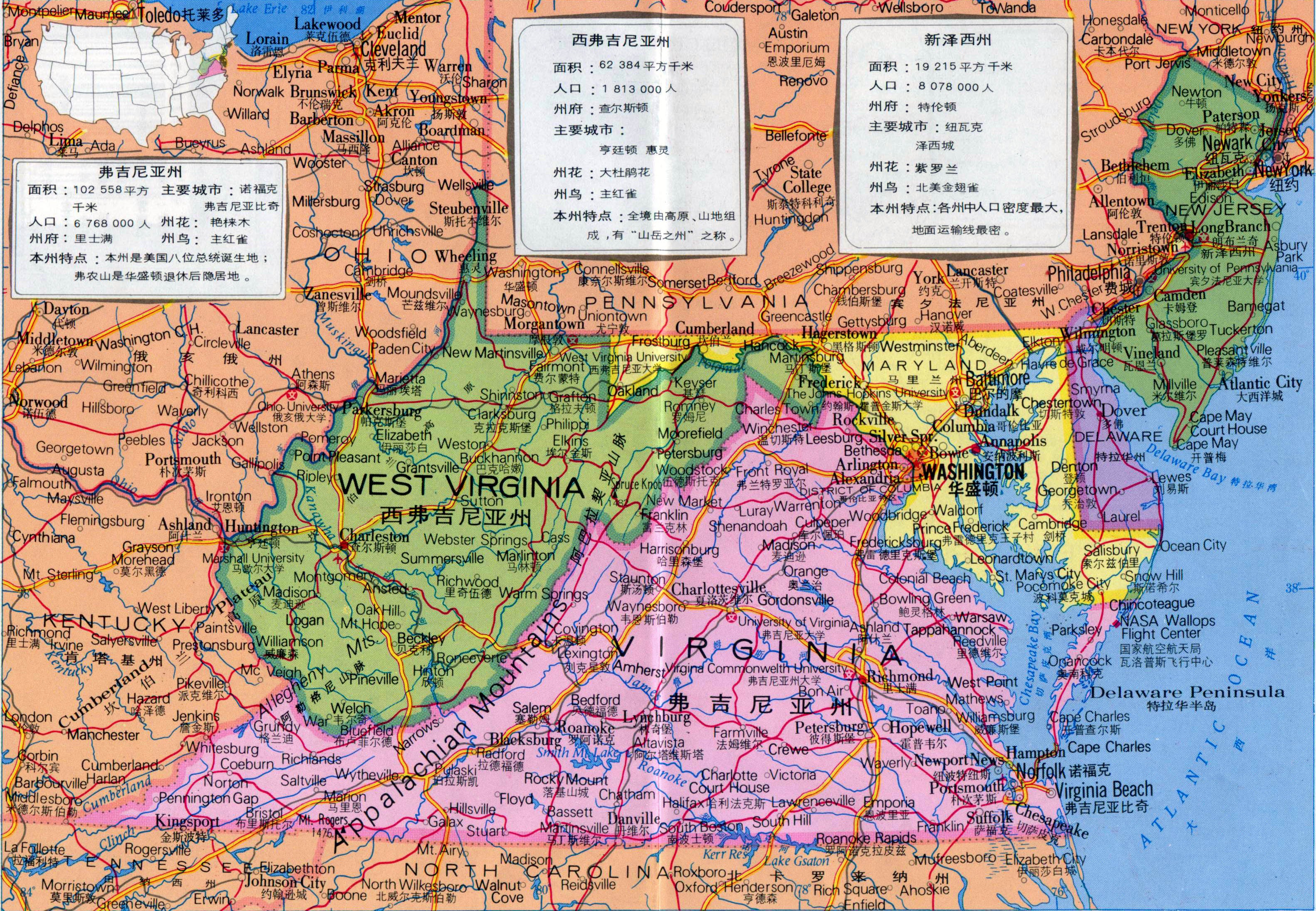 弗吉尼亚州地图(鼠标点击以上地图图片即可查看高清大地图)