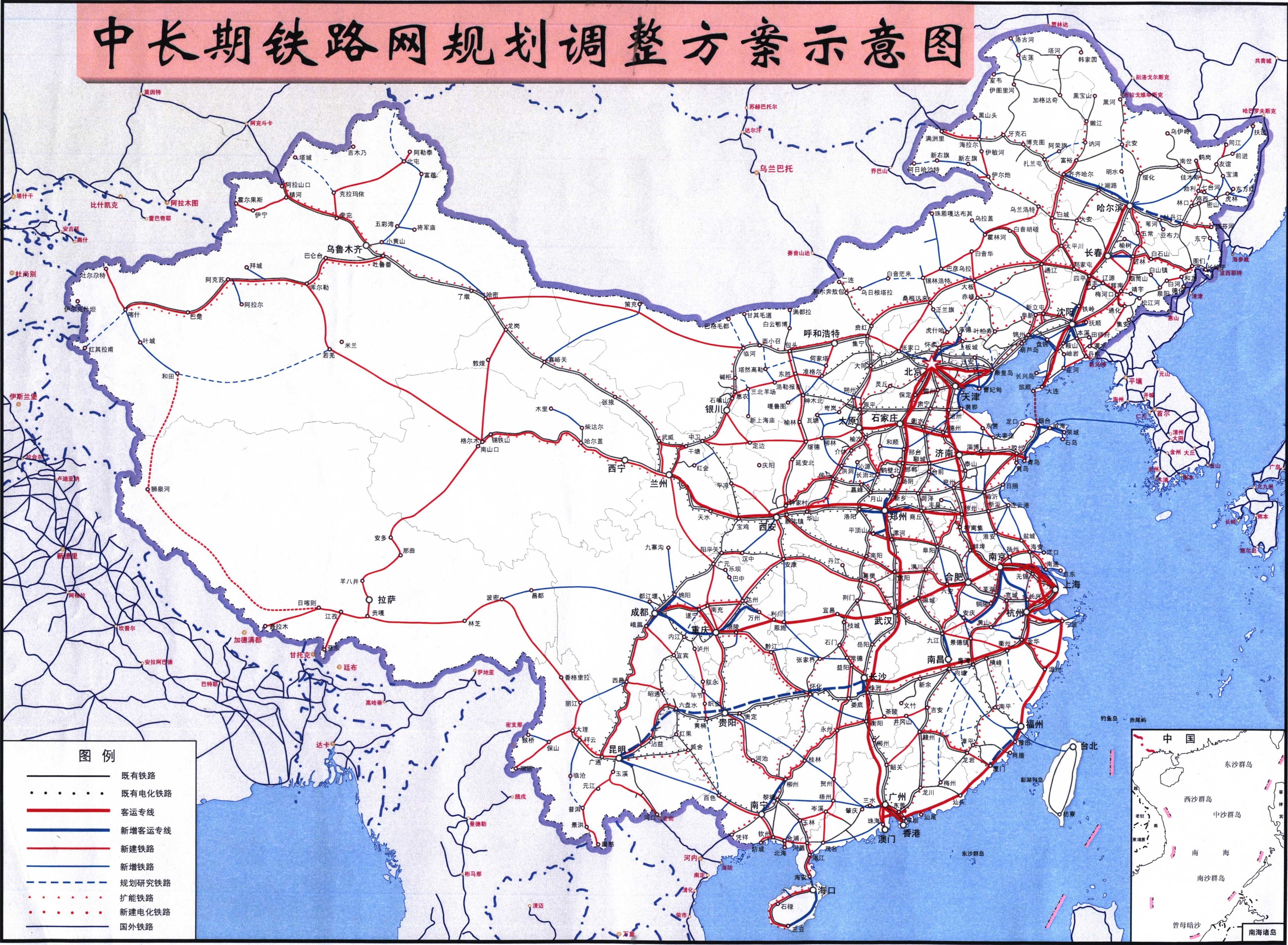 中国铁路网地图【中长期规划调整示意图】(高清全图大地图)