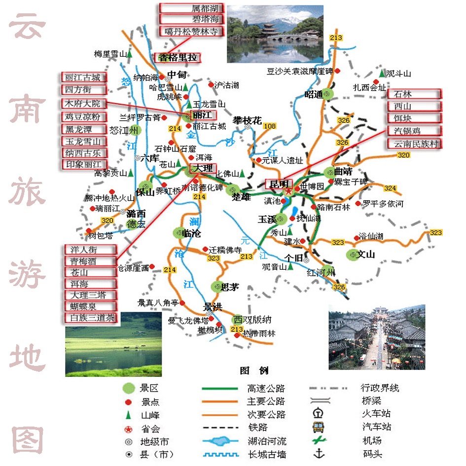 云南旅游地图(鼠标点击以上地图图片即可查看高清大地图)