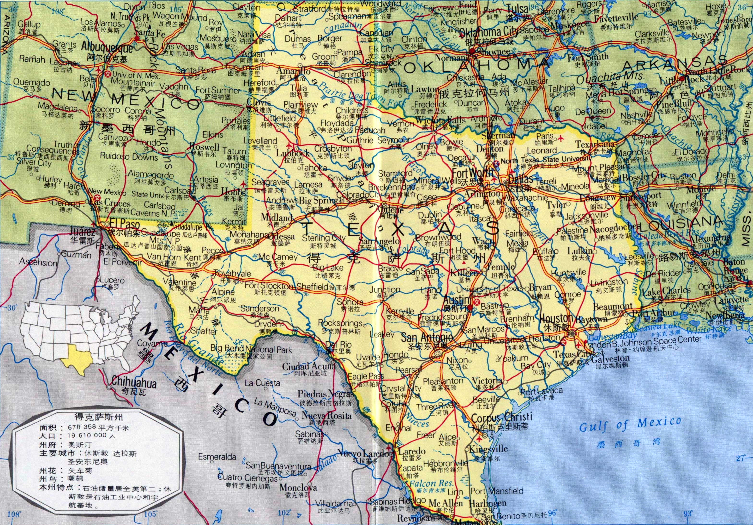 德克萨斯州地图【中文版】(鼠标点击以上地图图片即可查看高清大地图)