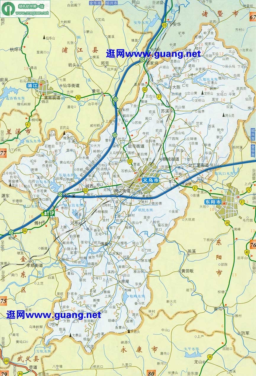义乌地图(鼠标点击以上地图图片即可查看高清大地图)