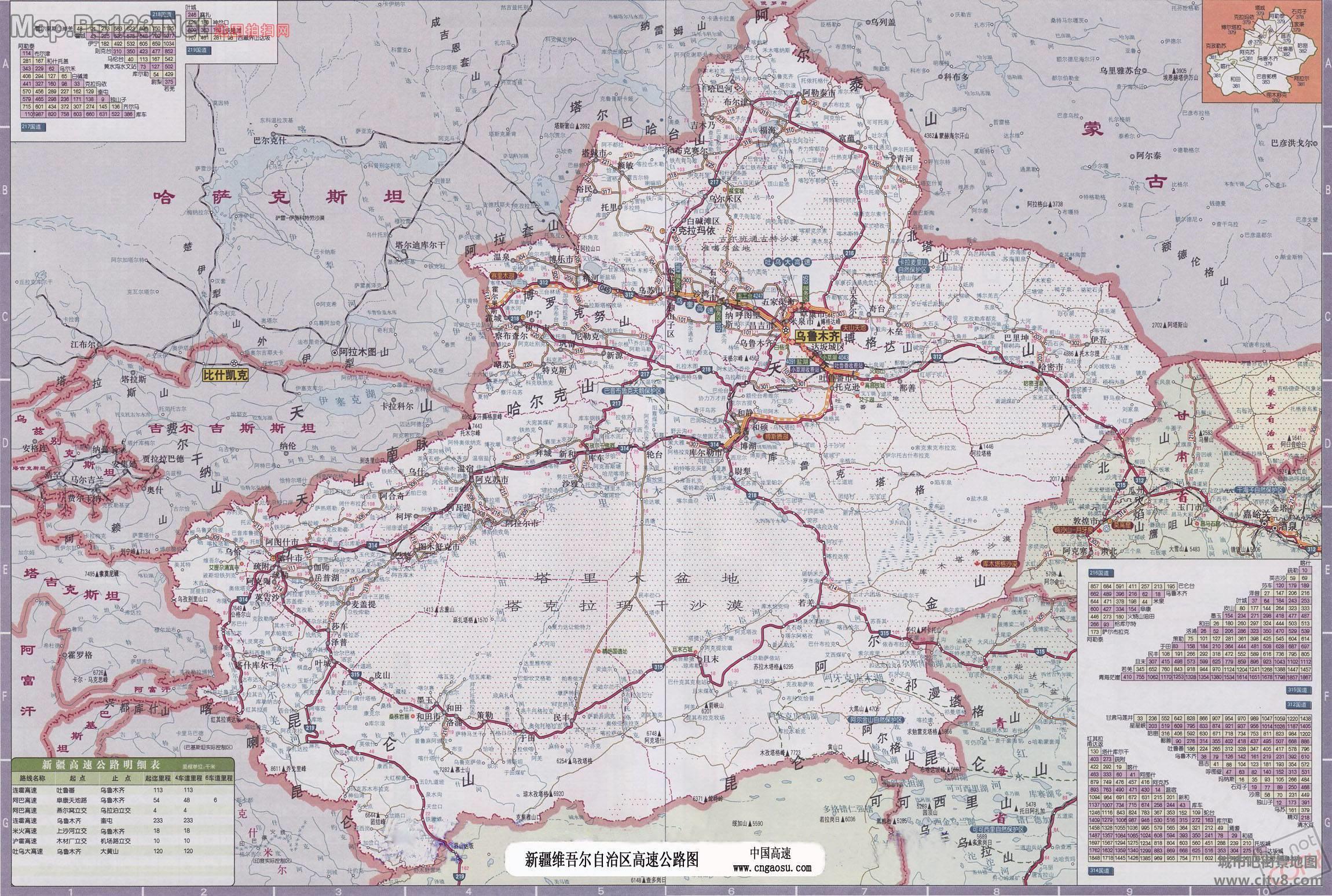 新疆地图全图高清版(鼠标点击以上地图图片即可查看高清大地图)
