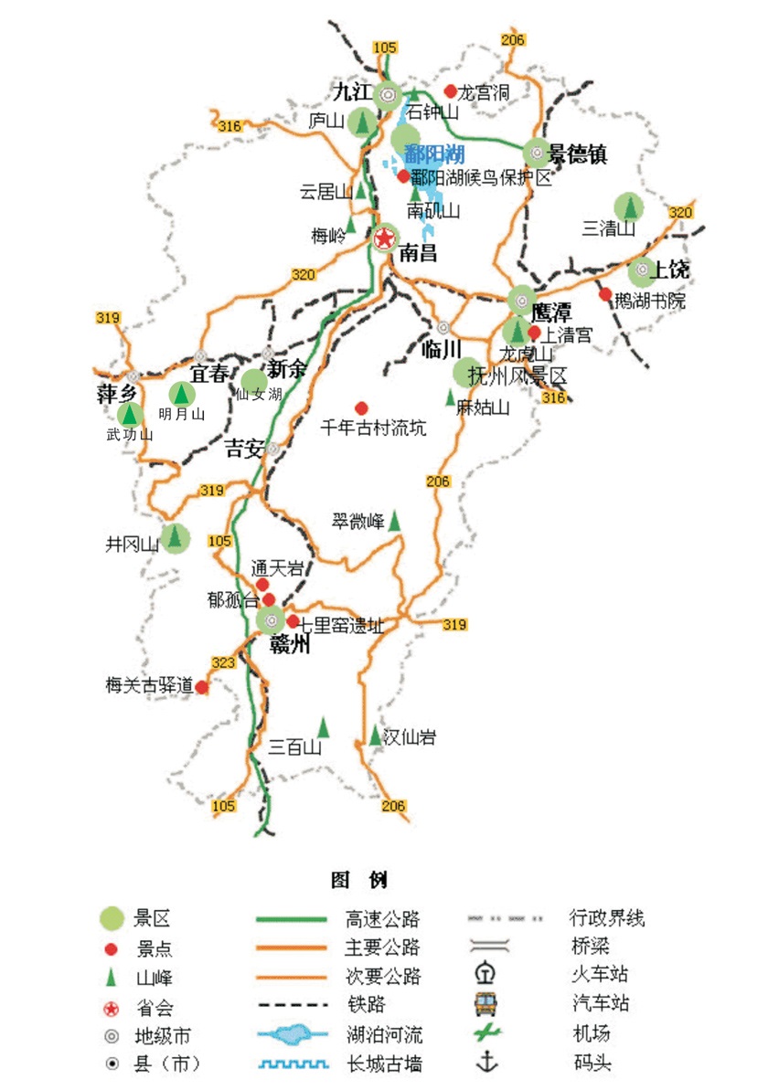 江西省旅游地图(鼠标点击以上地图图片即可查看高清大地图)
