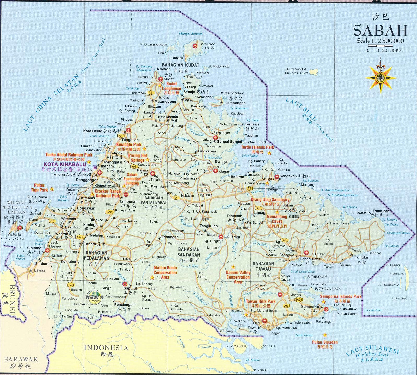 导读:本文所分享的是沙巴地图高清版大地图,地图经过缩放处理,鼠标点击可以查看高清大地图。