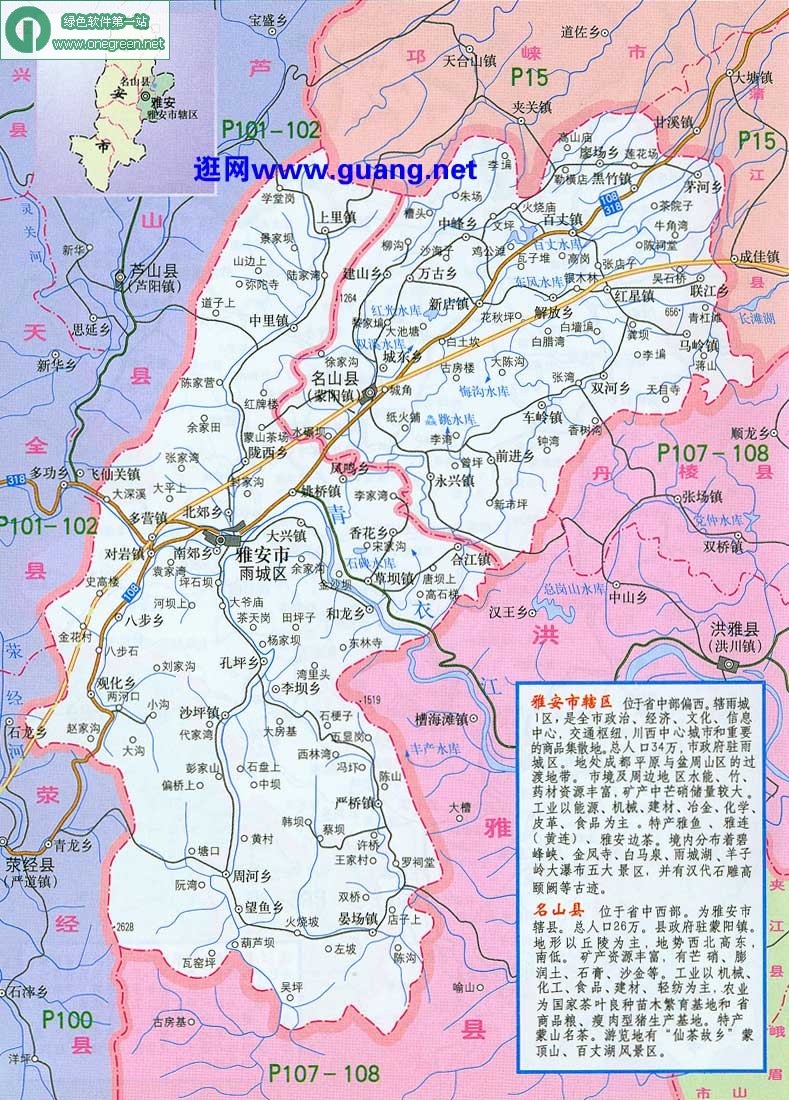 雅安市地图(鼠标点击以上地图图片即可查看高清大地图)