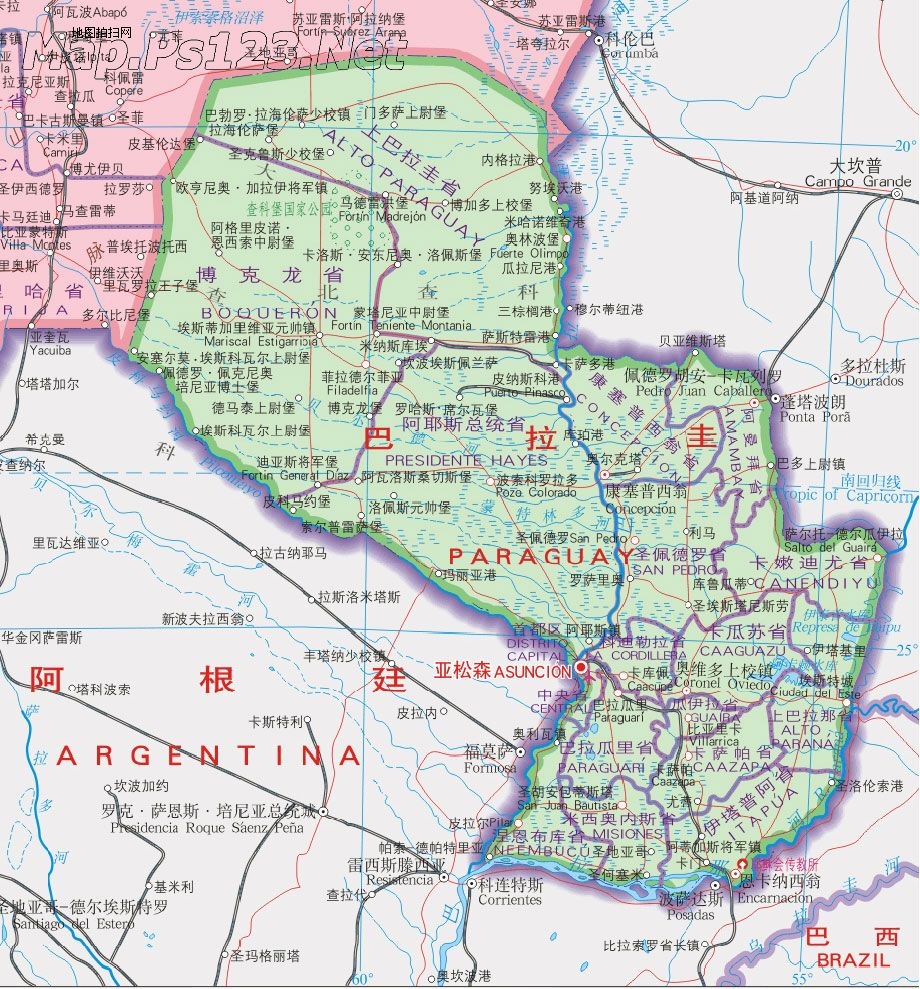 巴拉圭地图【中文版高清大图】(鼠标点击以上地图图片即可查看高清大地图)