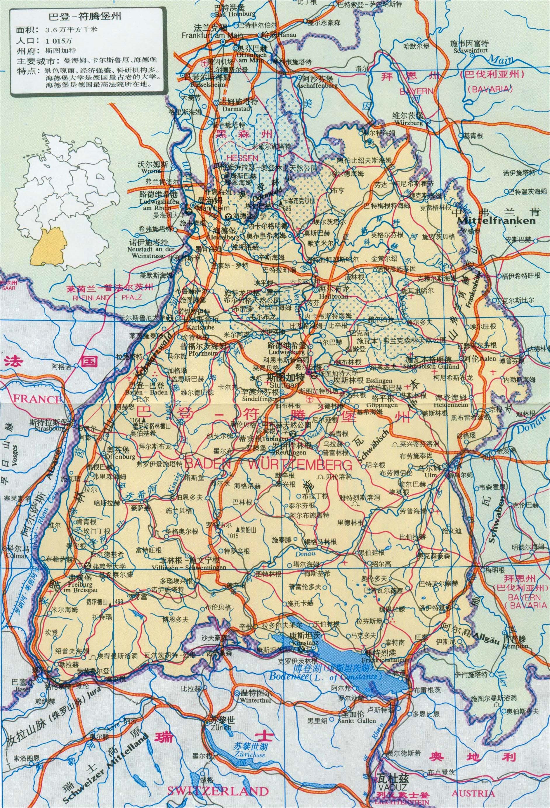 巴登-符腾堡州(鼠标点击以上地图图片即可查看高清大地图)