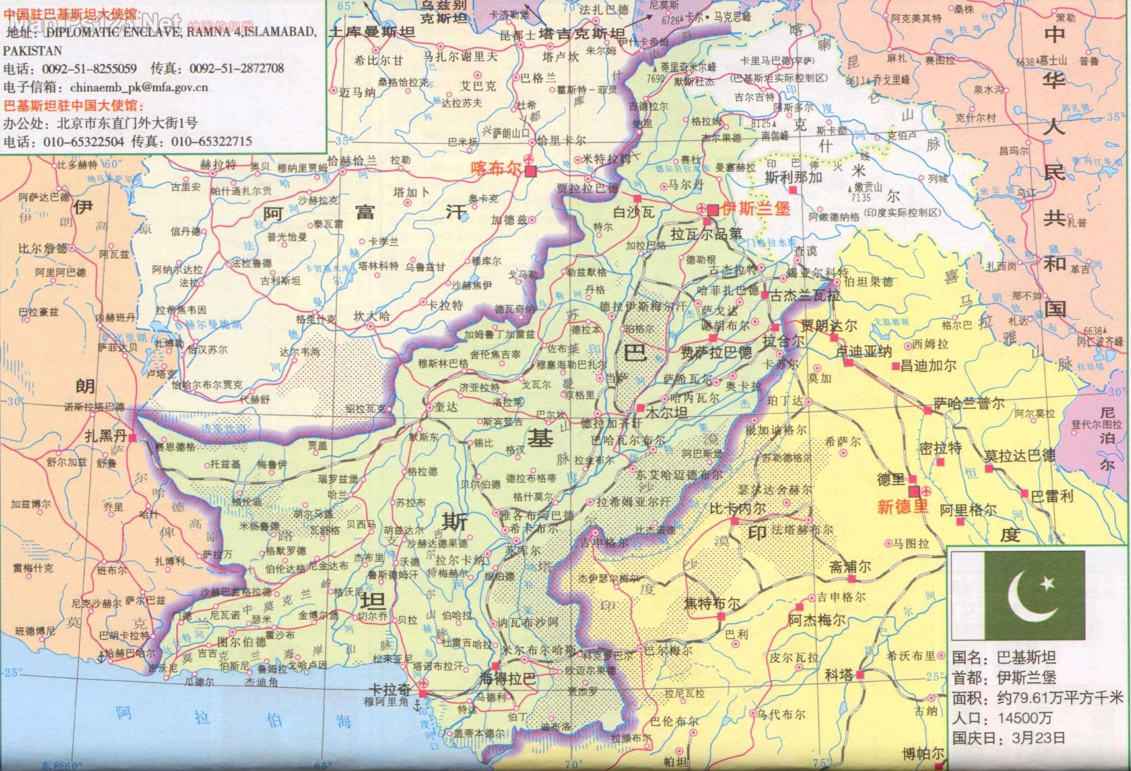巴基斯坦地图中文版(鼠标点击以上地图图片即可查看高清大地图)