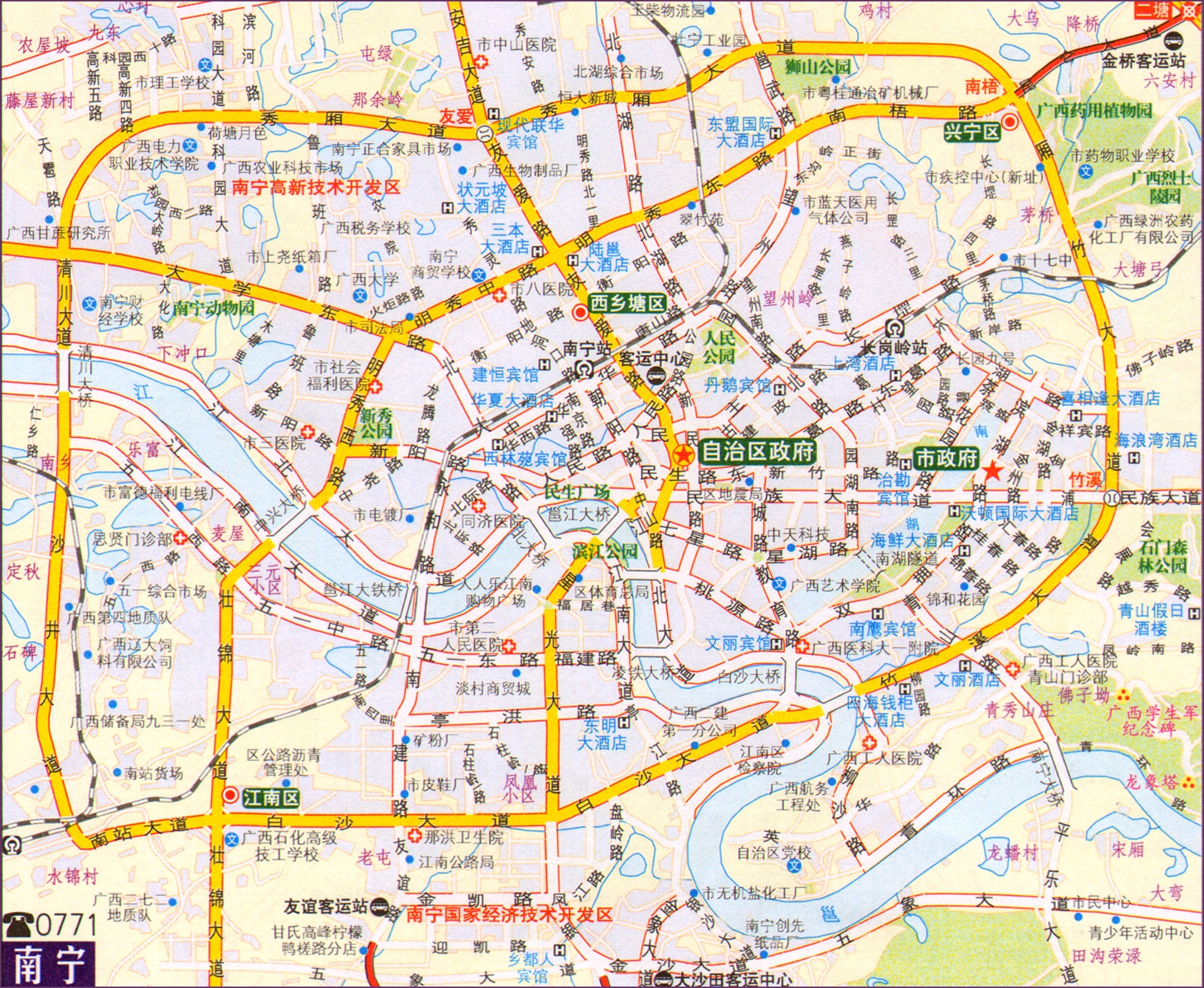 南宁市区地图(鼠标点击以上地图图片即可查看高清大地图)