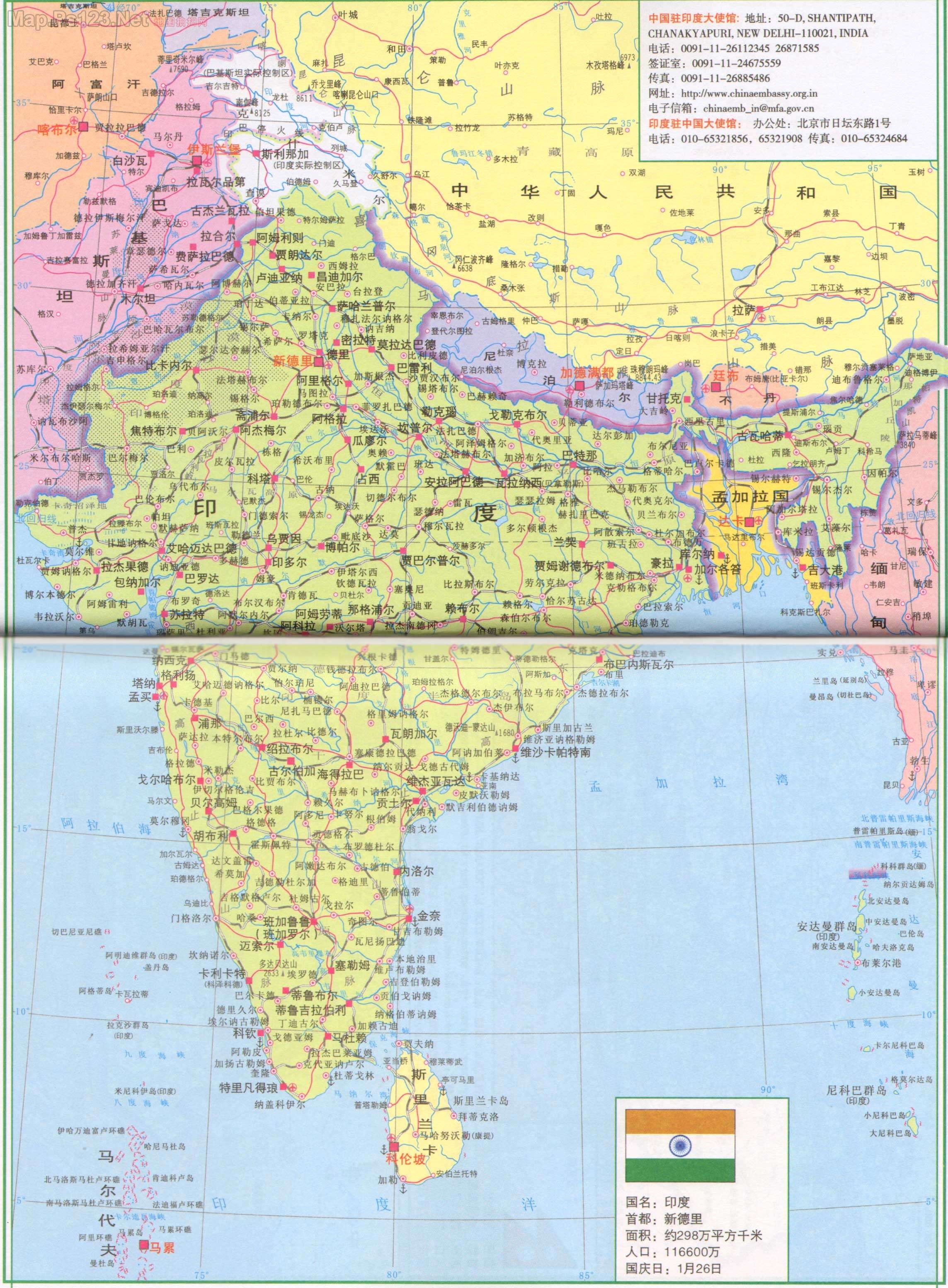 印度地图中文版(鼠标点击以上地图图片即可查看高清大地图)