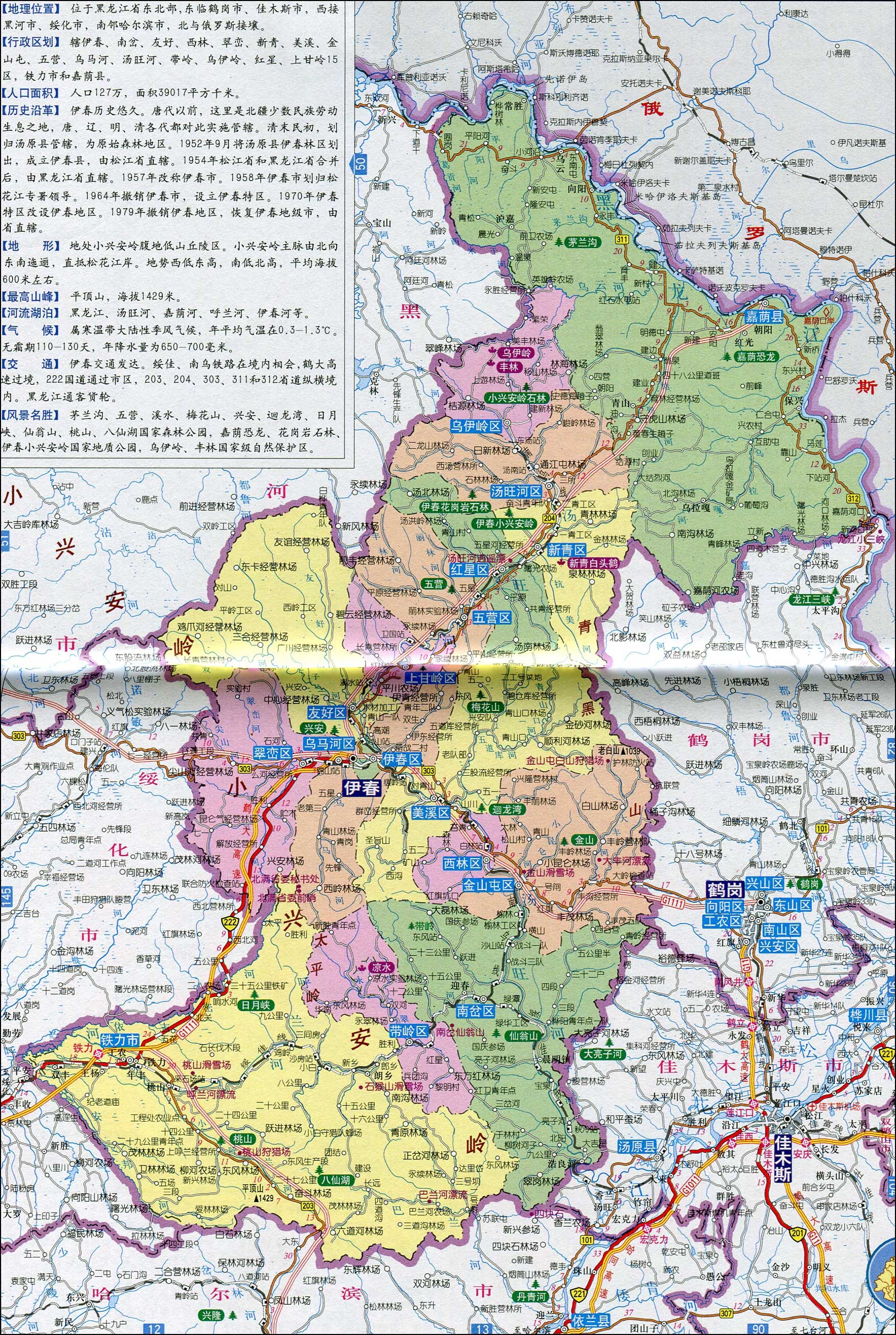 伊春地图(鼠标点击以上地图图片即可查看高清大地图)