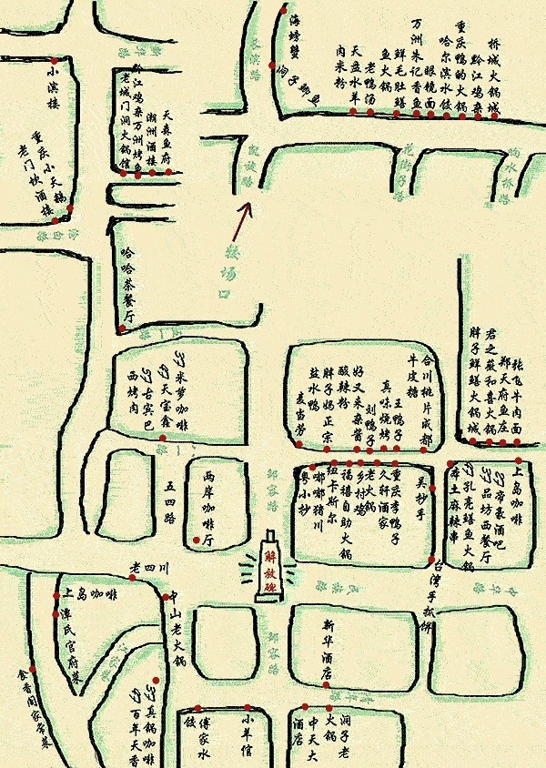 解放碑地图(鼠标点击以上地图图片即可查看高清大地图)