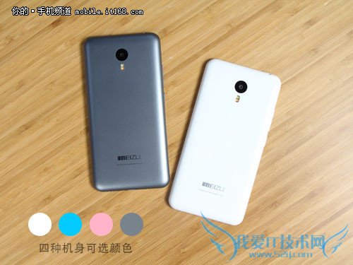 机身背面方面,在配色方面,此次魅蓝Note2代也有所改进。之前在魅蓝Note一代的销售过程中,黄色和绿色是销量靠后的两种颜色,并且所有一代产品为了追求圆润光泽的效果均采用亮面后盖,而消费者对于磨砂灰色配色的呼声也非常高。此次魅蓝Note2则采用白色、灰色、蓝色、粉色四色配色,其中灰色为磨砂手感,多了成熟稳重的选择。并且磨砂材质在防刮花、防指纹方面拥有得天独厚的优势。