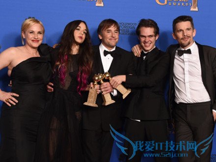 "Boyhood" won Best Motion Picture - Drama at the 2015 Golden Globes, one of three awards Richard Linklater's film grabbed on Sunday night. Linklater also took home Best Director, while co-star Patricia Arquette grabbed Best Supporting Actress.《少年时代》获得了2015年金球奖的最佳剧情类电影奖,这是周日晚上理查德·林克莱特的这部电影斩获的三项大奖之一。林克莱特也抱回了最佳导演,同时共演影星帕特里夏·阿奎特拿下了最佳女配。