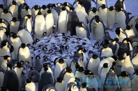 But when it’s -60C and the wind is 100mph, huddling together makes p-p-p-perfect sense. Having a tight protective circle of grown-ups also helps.而在零下60℃低温,每英里风速100的环境下,挤成一团就完完全说得通了。一群成年帝企鹅围城一圈保护它们,希望能让企鹅宝宝好受得多。