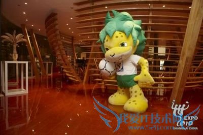 南非世界杯吉祥物“扎库米”在门口笑迎四方来宾