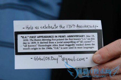 ¡°We happen to know the exact date and place of the very first ¡®OK¡¯ and that¡¯s not very usual for many words so why not celebrate that day?¡± says Metcalf, whose book built on Read¡¯s earlier research.Ã·ÌØ¿¨·ò˵£º¡°ÎÒÃÇÖªµÀÁËOKµ®ÉúµÄʱ¼äºÍµØµã£¬Õâ¶ÔÓÚÐí¶à´ÊÓïÀ´Ëµ²¢²»³£¼û£¬ËùÒÔÎÒÃÇΪʲô²»Çì×£ÕâÒ»ÌìÄØ£¿¡±ËûµÄÊé¡¶OK£ºÃÀ¹ú×îΰ´ó´ÊÓï²»¿É˼ÒéµÄ¹ÊÊ¡·ÊÇÔÚÄÇλÒѹʴÊԴѧ¼ÒÀïµÂÔçÆÚµÄÑо¿»ù´¡Éϱà׫µÄ¡£