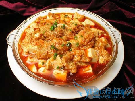 Perhaps the best known dish is Mapo Doufu. It gained in popularity when a pock-marked woman who lived near the Wanfu Bridge opened and ran a restaurant there, circa the 19th century. She served many kinds of bean curd dishes but perhaps the one most liked whose fame spread to the rest of China, got the name of Pock-faced Lady Doufu, better known by its Chinese name of Mapo Doufu.´¨²ËÖÐ×î¼ÒÓ÷»§ÏþµÄÒªÊýÂéÆÅ¶¹¸¯ÁË¡£ËüµÄÔ¨Ô´¿ÉÒÔ×·Ëݵ½´óÔ¼19ÊÀ¼Í£¬ÄÇʱÔڳɶ¼µÄÍò¸£Çűߣ¬ÓÐÒ»¸öÁ³Éϳ¤×ÅÂé×ӵįůţ¬¿ªÁËÒ»¼Ò·¹¹Ý¡£·¹¹ÝÀ﹩Ӧ¸÷ÖÖÓö¹¸¯×ö³ÉµÄ²ËëÈ£¬ÆäÖÐÂéÆÅ¶¹¸¯ÊÇ×îÊÜ»¶ÓµÄ²¢ÇÒºóÀ´ÃûÑïÈ«¹ú£¬ÕâµÀ²ËµÃÃû×Ö¾ÍÊÇÕâÑùÀ´µÄ~