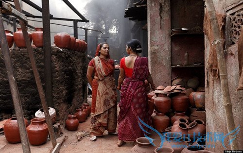 "People in Dharavislum in Mumbai work hard. The posture of these two women at the local pottery store, taking a short break for conversation, [expresses] dignity, while the colors of their saris perfectly blend with the scenery."¡°ÃÏÂò´ïÀάƶÃñ¿ßµÄÈËÃǹ¤×÷·Ç³£Å¬Á¦¡£ÕÕÆ¬ÖУ¬Á½¸ö¸¾Å®Õ¾ÔÚÌÕÆ÷µêÃÅ¿ÚÉÔÊÂÐÝÏ¢£¬ÕýÔÚÁÄÌì¡£ËýÃǵÄ×ËÊÆ±íÏÖ³öÁË×Ô×ðºÍ×ÔÖØ¡£Í¬Ê±£¬ËýÃÇ´©µÄɯÀö·þµÄÑÕÉ«ºÍµ±Ê±µÄ¾°É«ºÜÏàÅä¡£¡±