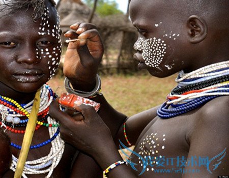 "Taken at a Karo Village in the Omo Valley of Ethiopia. The Karo are famous for their body-paint culture and skill. Away from the crowded village square, I found this 'makeup artist' focused on applying makeup on a young woman. Using a Q-tip as a brush he used a Georges Seurat-like pointillism technique! The calm, focused look of the artist is contrasted by the nervous, perspiring client -- perhaps unsure about the results (or my camera)."¡°ÅÄÉãÓÚ°£Èû¶í±ÈÑǰÂĪºÓ¹È¿¨ÂÞ´å¡£¿¨ÂÞÈËÒòÆäÈËÌå²Ê»æÎÄ»¯¼¼ÒÕÎÅÃû¡£ÔÚÔ¶ÀëÓµ¼·´åׯ¹ã³¡µÄµØ·½£¬ÎÒ·¢ÏÖÁËÕâ¸öÕýÔÚרÐĸøÒ»¸öÄêÇáÅ®º¢ÉÏ×±µÄ»¯×±Ê¦¡£ËýÓÃÒ»¸öÃÞ»¨°ôµ±×öË¢×Ó²¢Ê¹ÓÃÁËÏñÇÇÖΡ¤ÐÞÀÒ»ÑùµÄµã×´ÐÞÊη¨Å¶£¡»¯×±Ê¦À侲רעµÄ±íÇé¶Ô±È½ôÕųöº¹µÄÅ®º¢£¬Ò²ÐíËýÊÇÒòΪ²»È·¶¨½á¹û»áÊÇʲôÑù£¨Ò²»òÐíÒòΪÎÒµÄÕÕÏà»ú£©¡£¡±