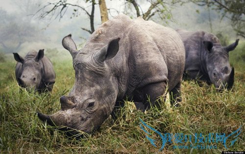 "The night before this photo, we tried all day to get a good photo of the endangered white rhino.Skulking through the grass, carefully trying to stay 30 feet away to be safe, didn't provide me the photo I was hoping for. In the morning, however, I woke up to all three rhinos grazing in front of me."¡°ÔÚÅĵ½ÕâÕÅÕÕÆ¬µÄǰһ¸öÍíÉÏ£¬ÎÒÃÇ»¨ÁËÒ»ÕûÌìʱ¼äÏëÒªÔÚΣÏյİ×ϬţȺÖÐÅĵ½Ò»ÕźÃÕÕÆ¬¡£ÎÒÃÇ͵͵ÃþÃþµØ´©¹ý²ÝµØ£¬Ð¡ÐÄÒíÒíµØÊÔͼ´ôÔÚ30Ó¢³ßÒÔÍâµÄ°²È«µØ´ø£¬µ«ÊÇûÓÐÅĵ½ÎÒÏëÒªµÄÕÕÆ¬¡£µÚ¶þÌìÔçÉÏ£¬µ±ÎÒÐÑÀ´È´¿´µ½3Ö»°×ϬţÔÚÎÒÃæÇ°³Ô²Ý£¬ÓÚÊÇÅÄÏÂÁËÕâÕÅÕÕÆ¬¡£¡±