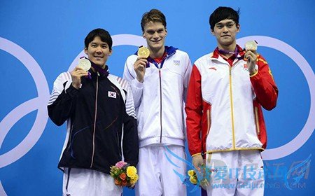 South Korea's Park Taehwan and China's Sun Yang shared the silver.韩国选手朴泰桓和中国选手孙杨并列获得银牌。