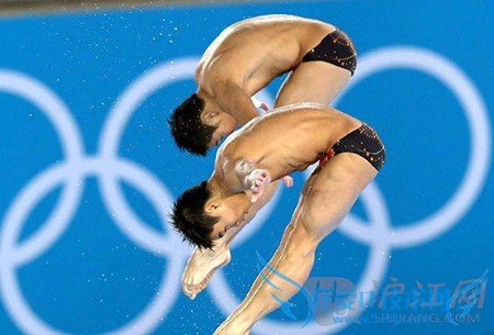 Cao Yuan and Zhang Yanquan of China dominated the final of men's 10m platform synchronized diving for the title at the London Olympic Games here on Monday. 曹缘和张雁全这一对中国组合,在跳水男子双人十米台中,获得金牌。