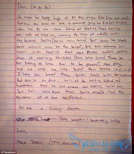 Close friend Max Stossel posted a picture of the letter he wrote to his late friend on Saturday alongside a tribute. 作为悼念弗莱丁伯格的好朋友马克斯·施托塞尔将之前写的信公布在了网上并附带了一封悼念信。