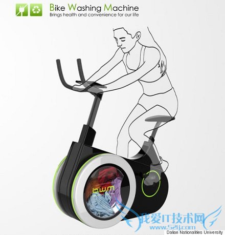 Students at the Dalian Nationalities University in China have designed a bike washing machine that will wash your clothes while you pedal. The invention is aptly called "Bike Washing Machine" or "BiWa," and it aims to "bring health and convenience to our life" by combining a stationary bike and a washing machine.大连民族大学的学生们设计了一款自行车洗衣机,能让人边运动边洗衣服。这个发明被叫做自行车洗衣机或者简称为BiWa,其目的是通过将固定自行车和洗衣机的结合使我们的生活更加健康和便捷。